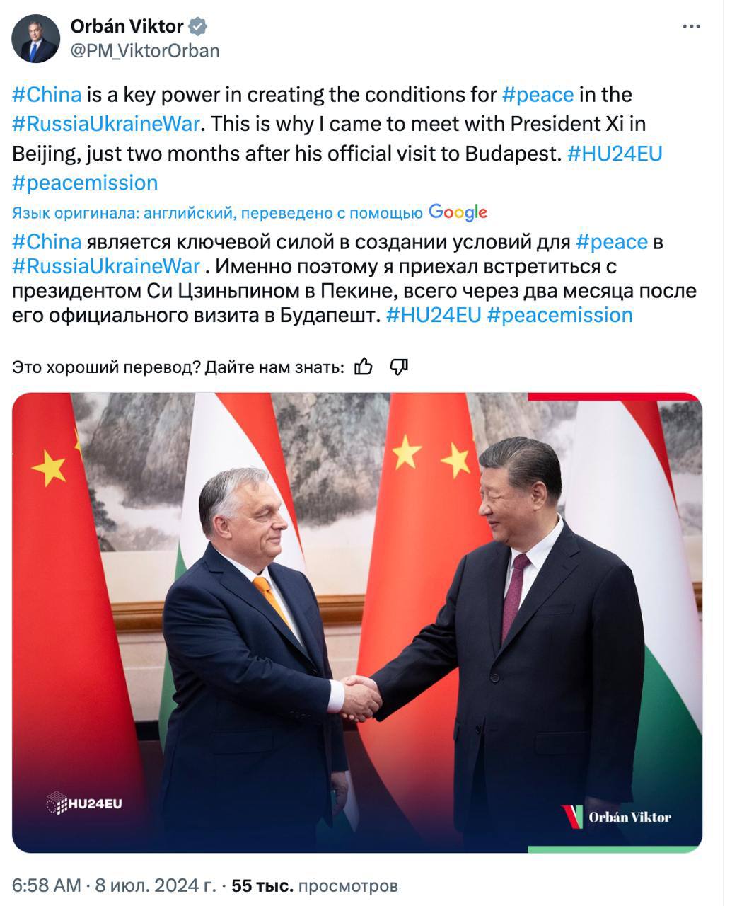 Orban himself posted a photo from the airport on social media X, captioning it "Peace Mission 3.0. Beijing."