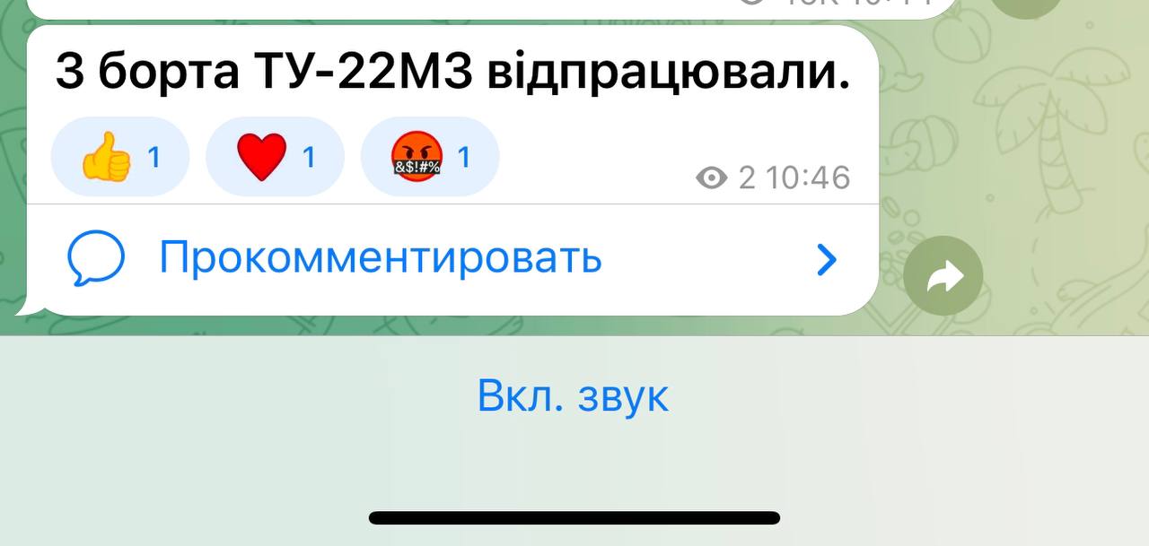 Воздушная тревога по всей 404. Ту-95МС стратегической авиации произвели пуски крылатых ракет по целям. Сообщают о первых взрывах в Черниговской области.