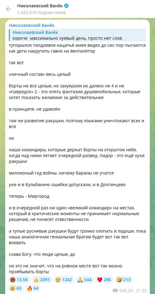 Уже второй день, нас пытаются убедить, что удар был не такой уж сильный. Значит попали как надо.