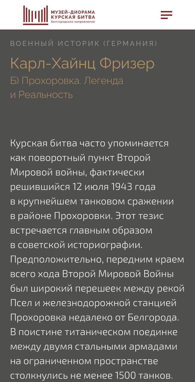 The Museum of the Battle of Kursk decided to react to the publications about "avalanche-like battle trance" on the museum's website, where an article by German revisionist Frieser was published.