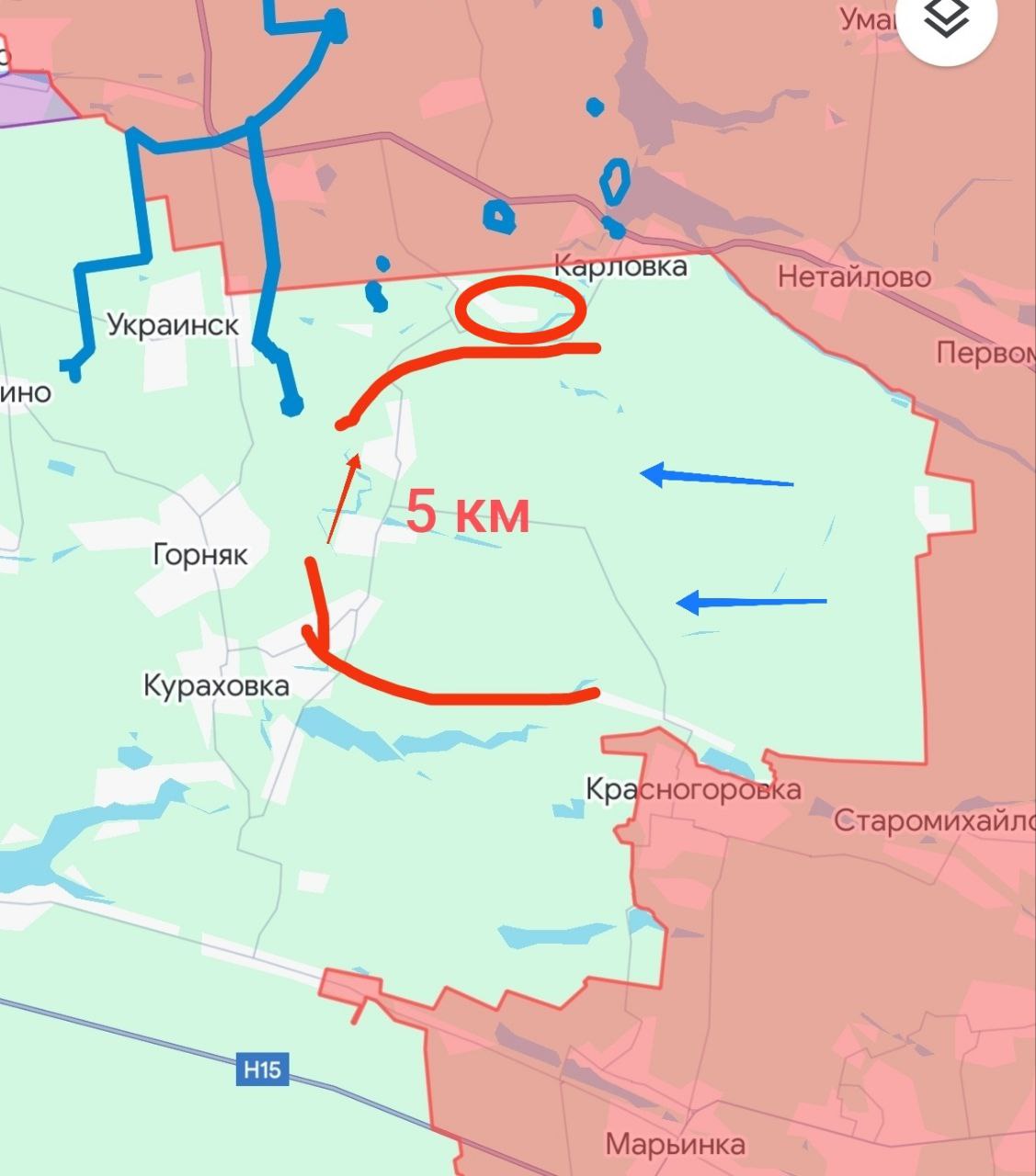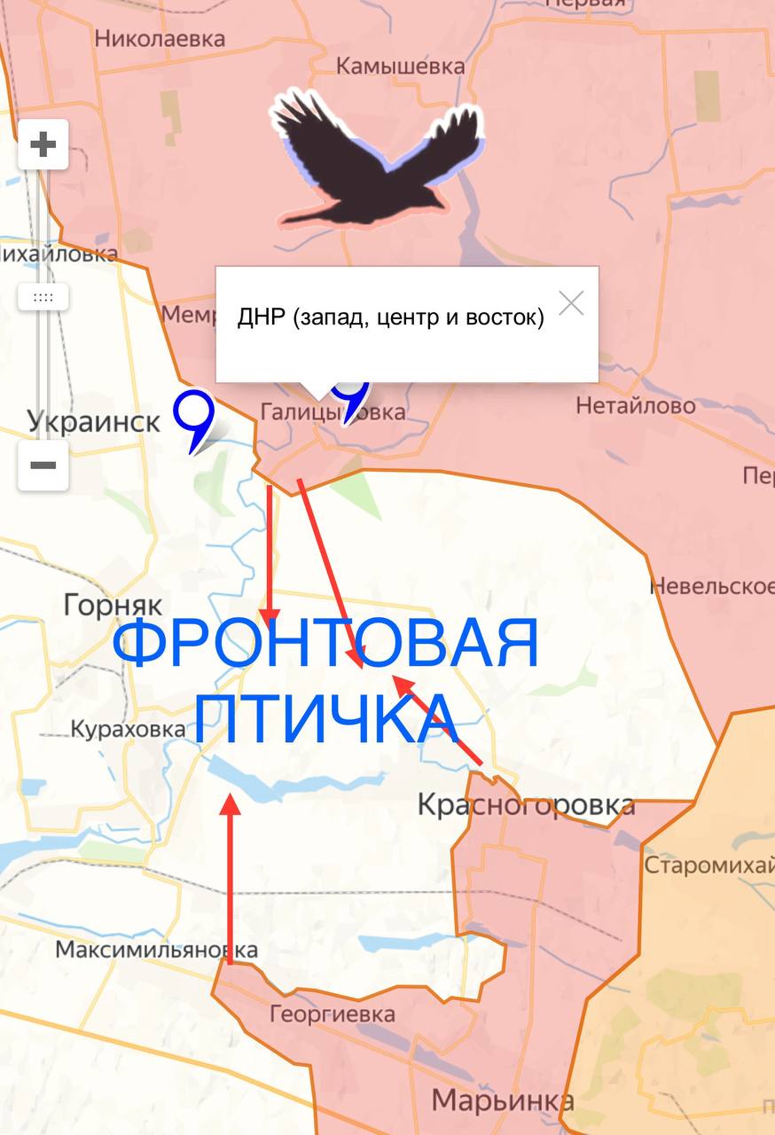 ⚡️При таком темпе продвижения наших войск, противник окажется в оперативном окружении по прямой Галициновка - Красногоровка или Галициновка - Максимильяновка.