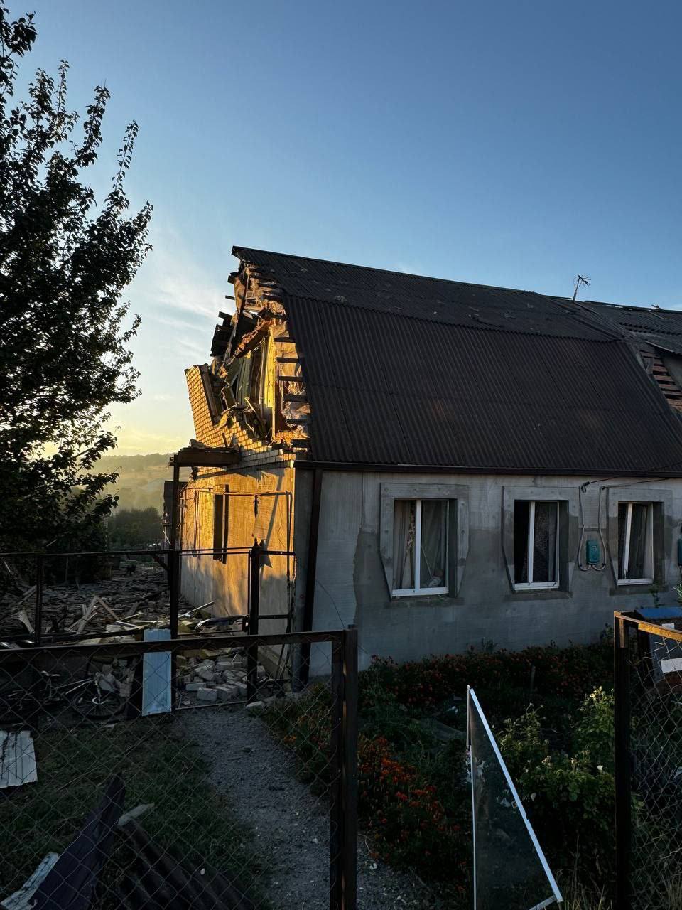 ▪️Часть ракет сбита над городом. Вероятно после падения осколков горит частный дом за городом.