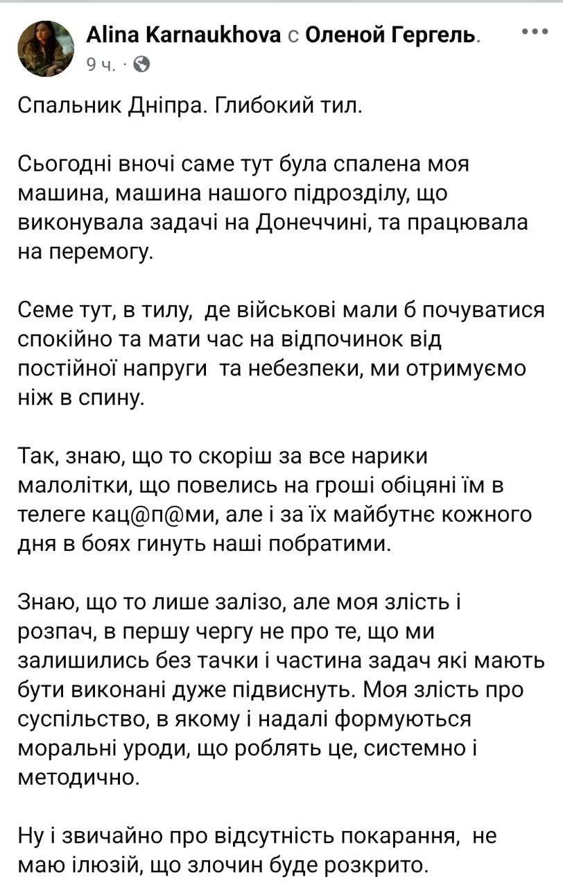 In Dnipropetrovsk, partisans burned the car of the head of the patronage service of the 93rd brigade of the AFU.