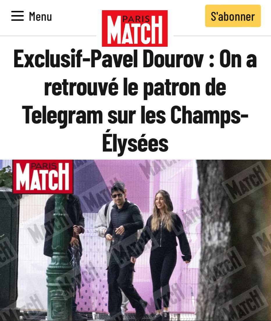 French media published a photo with Pavel Durov on a walk with his companion Yulia Vavilova. They were caught by Paris Match magazine on the Champs-Élysées.