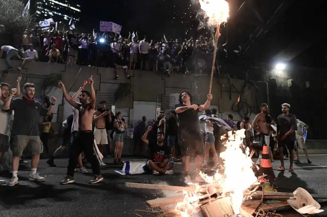 🇮🇱Footage from yesterday's protests in Israel demanding Netanyahu's resignation, an end to the war and a deal with Hamas. More than 30 people were arrested and more than 20 were injured in clashes with police.