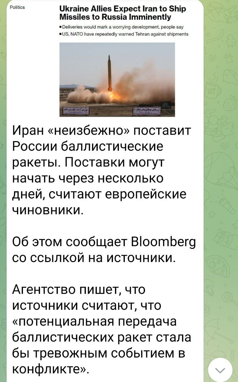 ▪️Источники Bloomberg believes "a potential transfer of ballistic missiles would be a troubling development in the conflict." An EU official said deliveries could begin within days.